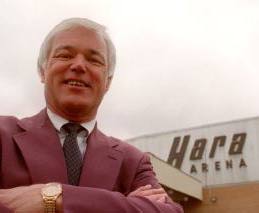 | Johnny Walker was well-known in Dayton in the 1970s and 1980s as a TV broadcaster on Channel 22, where he hosted the annual Muscular Dystrophy telethon. In 1987 he left broadcasting to run Hara Arena and is generally credited with its later success. | ![]() |