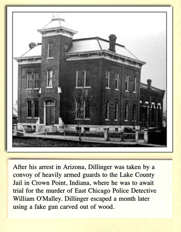 On Jan. 30, 1934, Dillinger was taken by plane to Chicago, and then driven by a heavily armed convoy to the Lake County Jail in Crown Point, Indiana, where he was to await trial for crimes committed in East Chicago. Newspaper reporters and photographers from across the U.S. descended on Crown Point to get a look at the famous outlaw. As he always did in such situations, Dillinger was disarmingly charming, giving the scribes great quotes and posing genially for the cameramen. Newspaper accounts recounted Dillinger joking with the guards and complimenting the lawmen who had hunted him.