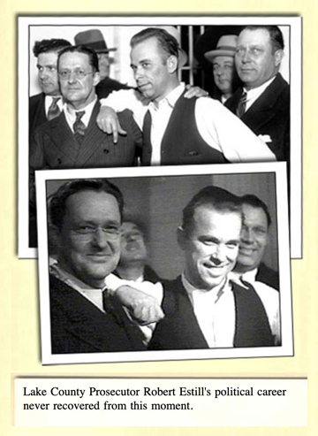 Among the officials at the press conference was Prosecutor Robert Estill, whose job it would be to send the affable outlaw to the electric chair. At the urging of photographers, Estill posed for photos standing next to Dillinger as other law enforcement officials stood around them. Put your arm around him, someone shouted and Estill, to his later regret, played along. Dillinger did too, casually leaning his arm on the prosecutor's shoulder as if they were old pals. When the palsy photo appeared in the papers the next day, Estill knew he'd made a mistake. But it wouldn't matter in the long run if he became the man who sent John Dillinger to the deathhouse.