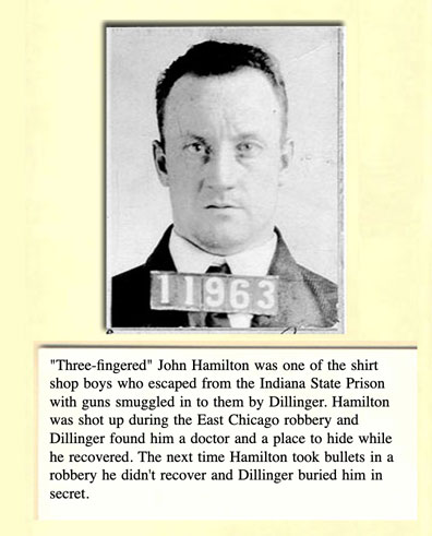 They escaped with $20,000, but Hamilton was seriously injured. Dillinger took him to an underworld doctor in Chicago and then to Fort Wayne, where Hamilton had relatives. Dillinger would afterwards deny to all -- friends and foes alike -- that he had been the one who shot O'Malley. At times, he denied being involved in the East Chicago robbery at all, and other times, he suggested Hamilton had been the shooter.