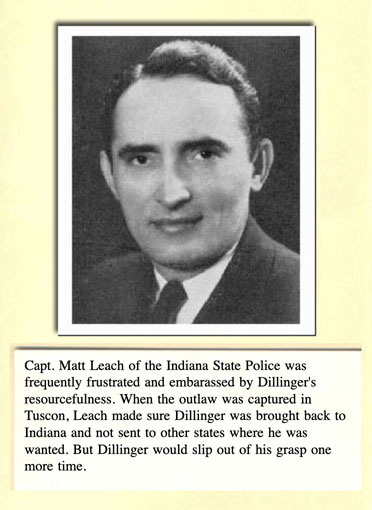But Capt. Matt Leach of the Indiana State Police, was determined that whatever might happen to the rest of the gang, Dillinger, at least, would be brought back to Indiana to face the death penalty for Sgt. O'Malley's killing.