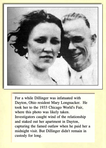 Meantime, investigators had learned that Dillinger had a girlfriend, Mary Longnacker, who lived in Dayton, Ohio. Dayton police staked out her apartment at 324 W. First Street, and on the night of Sept. 22, Dillinger showed up. The cops burst in and arrested him without a fight. Searching him, they found a hand-drawn map of the Indiana State Prison.