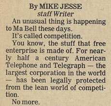 There were perhaps a dozen people on the staff. The editor was Jim Brown, a tall plump man in his 30s with sandy hair and a mustache. The city editor, Denny, was very thin but had a booming voice that could be heard across the newsroom. When an irate reader called to complain about something that was in the paper, the call would be forwarded to Denny, who would listen for a moment and then loudly tell the caller what an idiot he must be to have misunderstood the article so stupidly, and he would proceed to give a civics lecture on the finer points of freedom of the press which, he would note repeatedly, the caller was apparently too much of a moron to have learned in school.