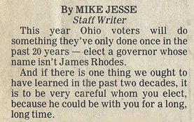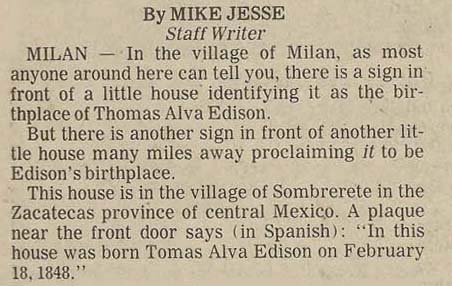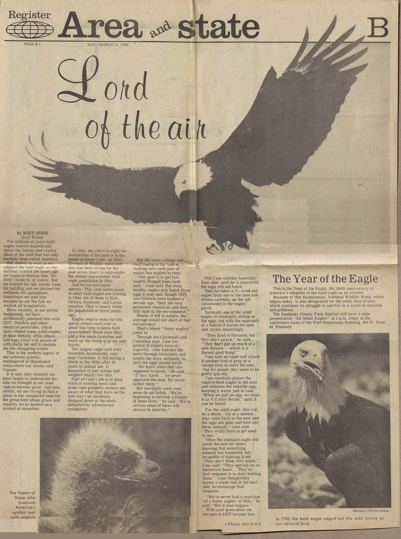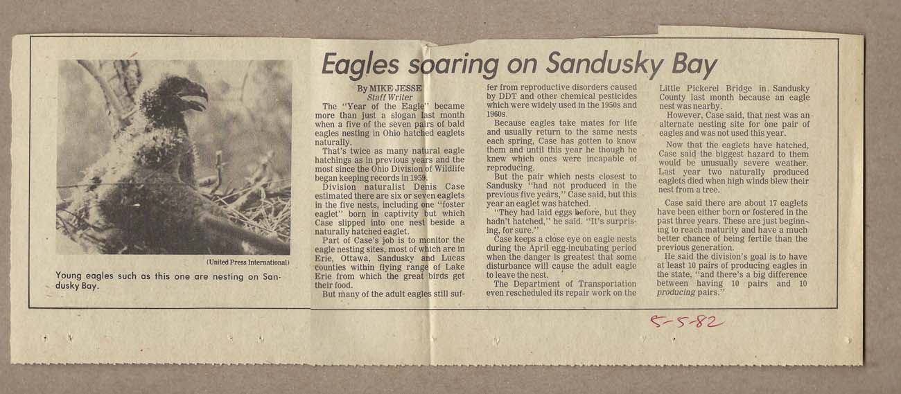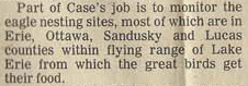 My first beat was police and fire, so every morning I made the rounds at the city police and the county sheriff's office. I also covered some criminal trials and did occasional feature stories. I later moved to the State desk, where my beat included anything related to state and federal government. Not that we covered those levels of government on a daily basis. I kept track of what our legislators and congressmen were up to and issues about state and federal agencies. On the State Desk, we also covered many of the surrounding smaller towns. One of the towns I covered was Milan, which was the birthplace of Thomas Edison. A few times I covered the town of Clyde, which was the basis of Sherwood Anderson's "Winesburg." I also covered Kelly's Island, which is one of several islands off the coast of Sandusky. I also wrote several environmental stories about Lake Erie. Some were about water quality, agricultural fertilizer runoff, and other science/policy matters, but also there was a program to repopulate bald eagles along Lake Erie, and I went with a guy from the Department of Natural Resources who showed (from a distance) the locations of the nests.